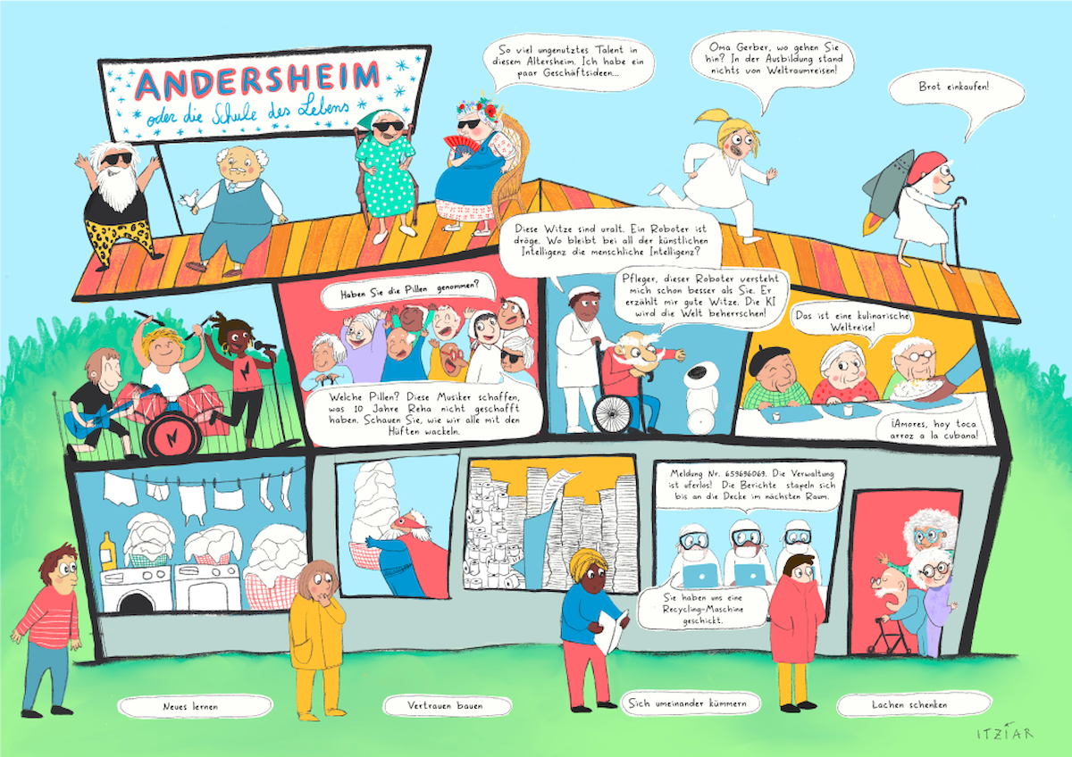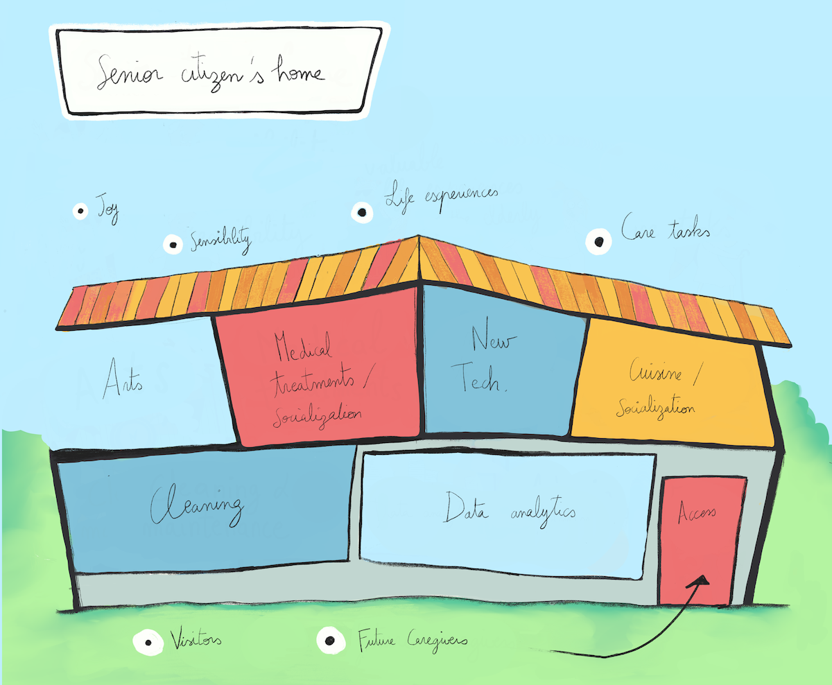 Using humour as a starting point, the aim of this work is to encourage reflection on the care system and retirement homes.