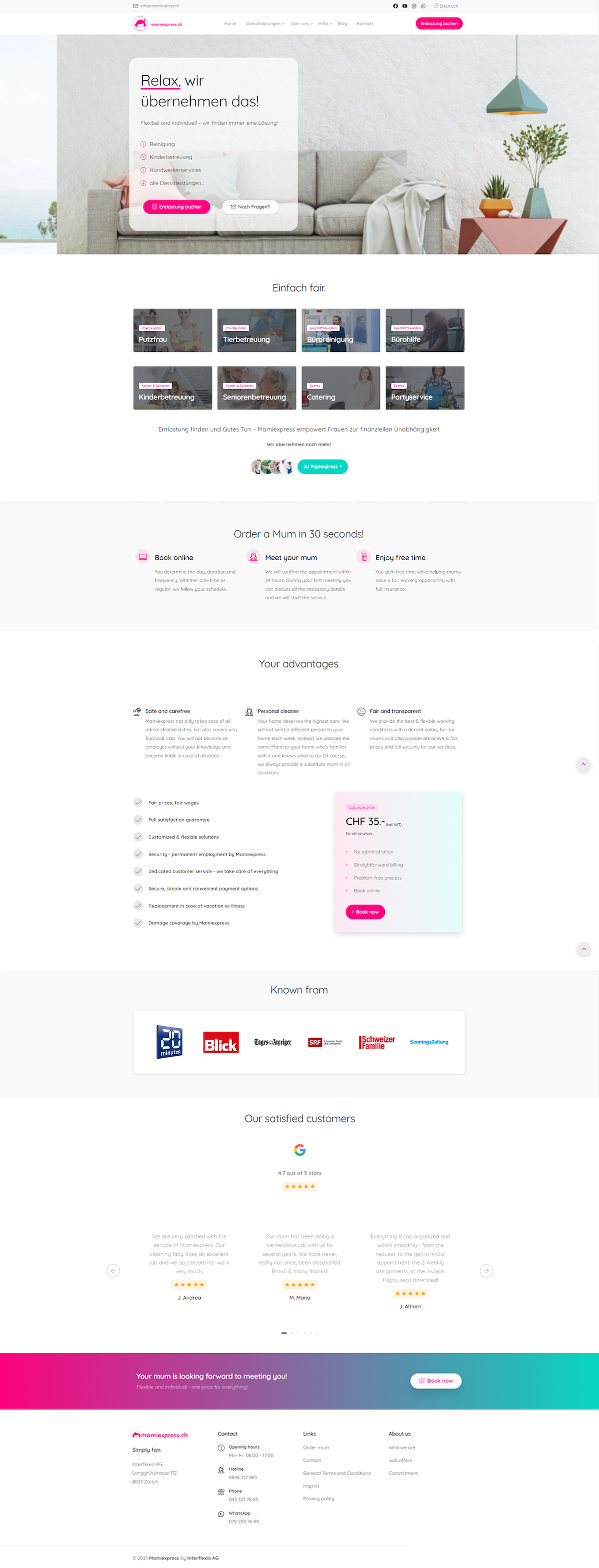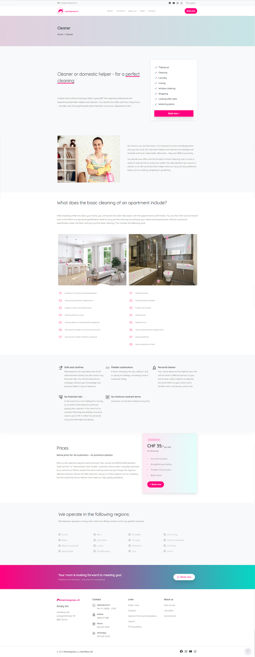 www.mamiexpress.ch offers cleaning services, childcare, care for the elderly and all kinds of home care services.